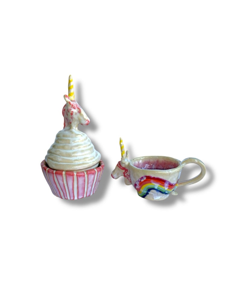 Unicorn cupcake jar -comes with two parts icing as the lid, wrapper as the jar.